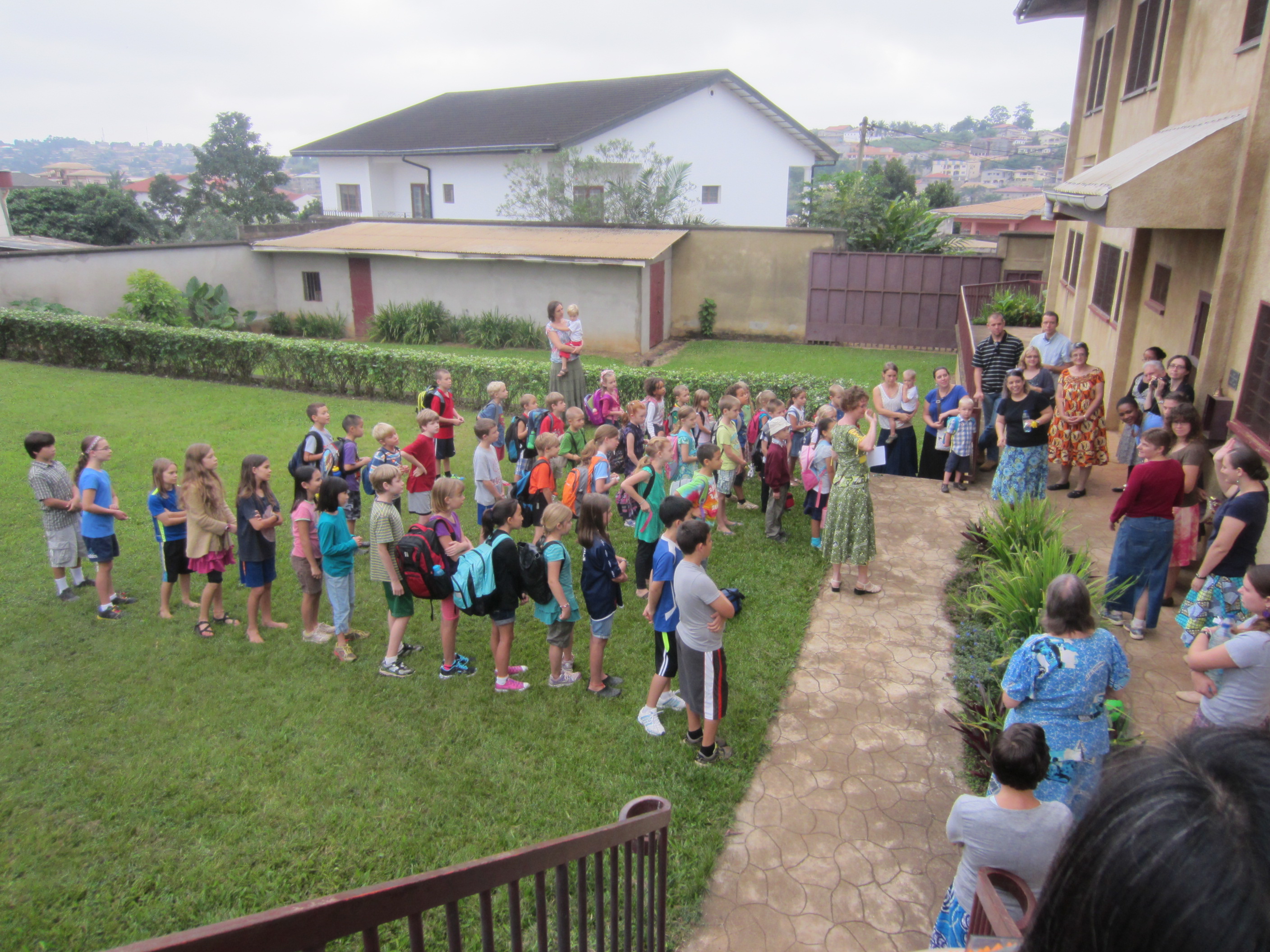 The students are lined up and ready for the school day to begin!