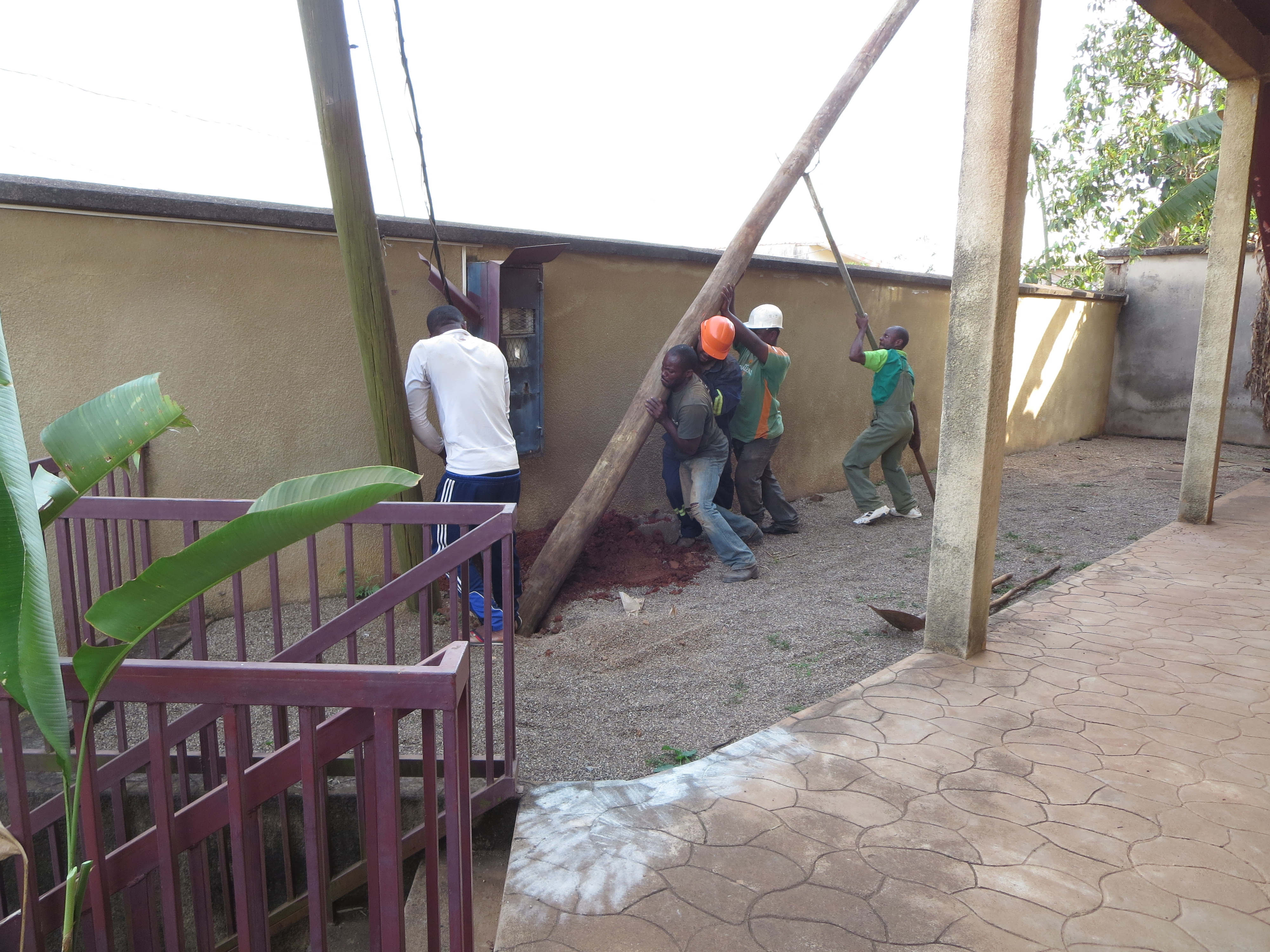 Last week, a crew of 6 men brought in a new electric pole. Here are a few pictures to document it’s arrival. All is good now :-).