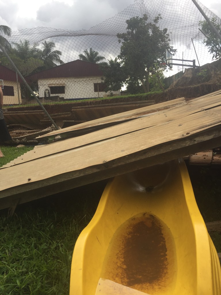 We are incredibly grateful that the wall fell during the night during mid-semester break, so no one was at school or injured when it fell.