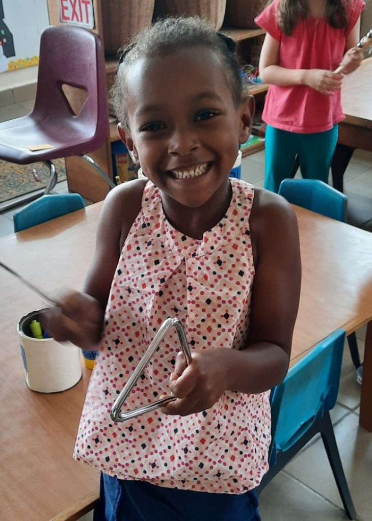 Day 2 was hearing. The students had a lot of fun making noise with musical instruments.