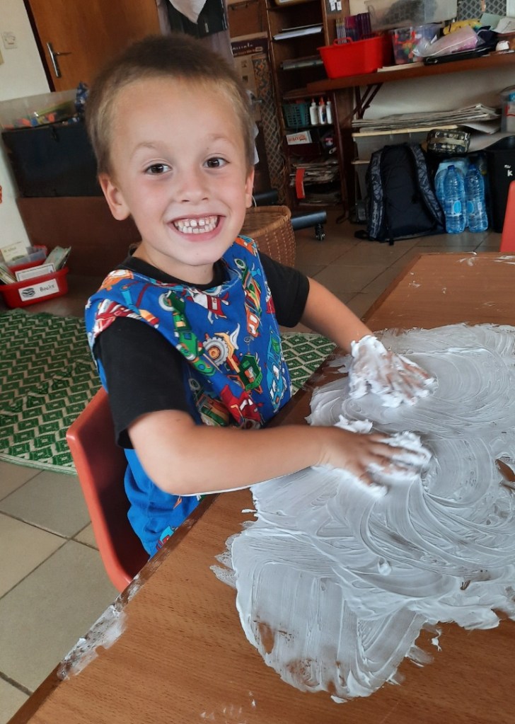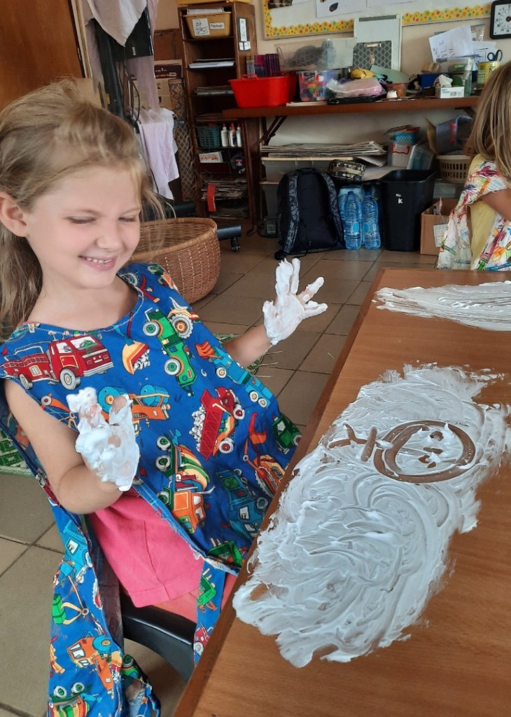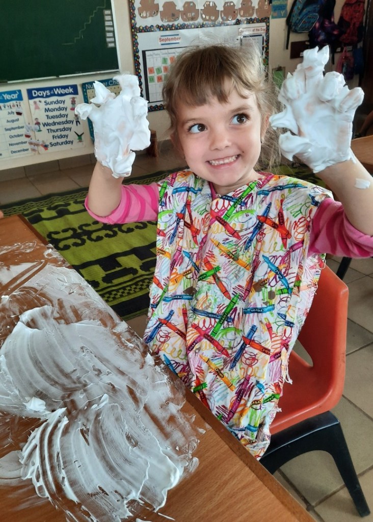 Day 4 – Touch – they had so much fun playing with shaving cream!