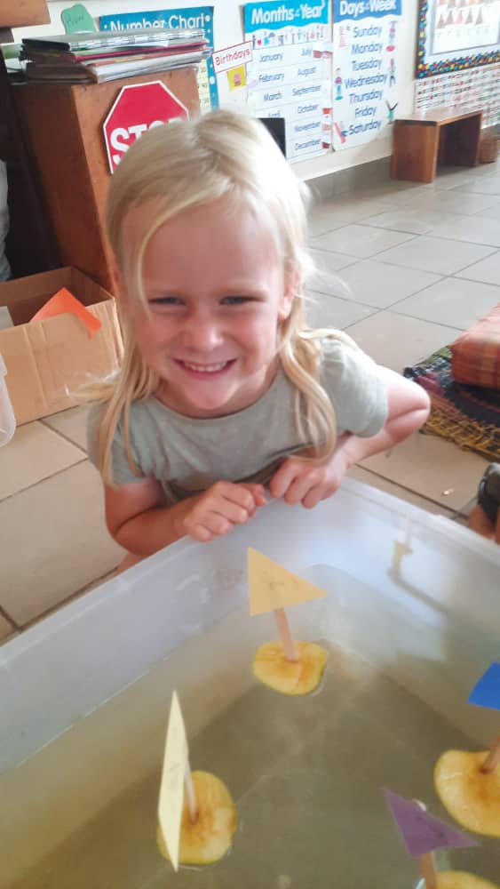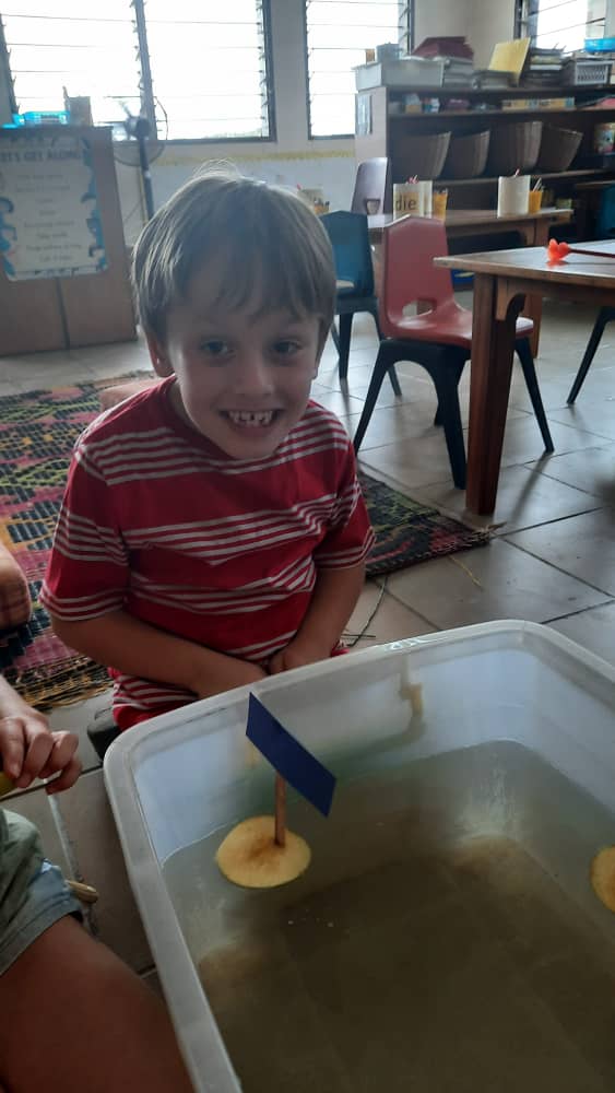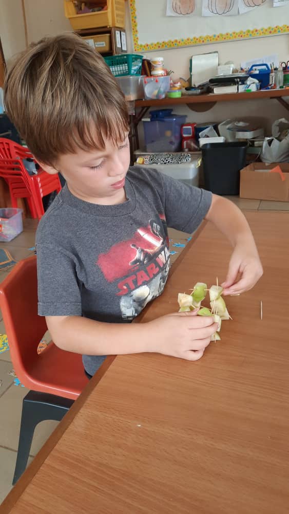 Making an apple slice boat–